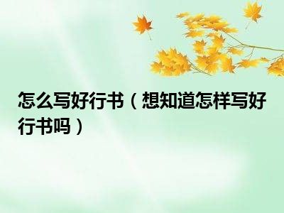 欢迎观看本篇文章,小升来为大家解答以上问题。怎么写好行书,想知道怎样写好行书吗很多人还不知道,现在让我们一起来看看吧!