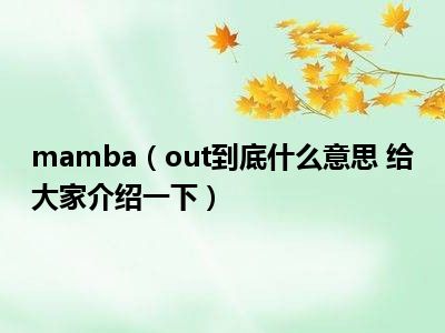 mamba(out到底什么意思 给大家介绍一下)