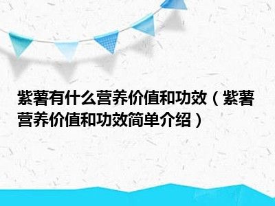 欢迎观看本篇文章,小升来为大家解答以上问题。紫薯有什么营养价值和功效,紫薯营养价值和功效简单介绍很多人还不知道,现在让我们一起来看看吧!