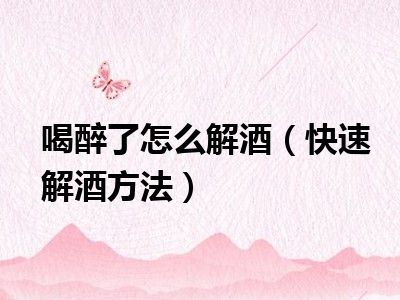 欢迎观看本篇文章,小升来为大家解答以上问题。喝醉了怎么解酒,快速解酒方法很多人还不知道,现在让我们一起来看看吧!