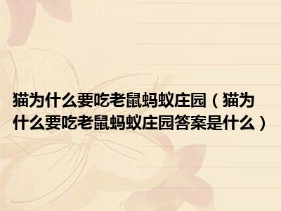 猫为什么要吃老鼠蚂蚁庄园(猫为什么要吃老鼠蚂蚁庄园答案是什么)