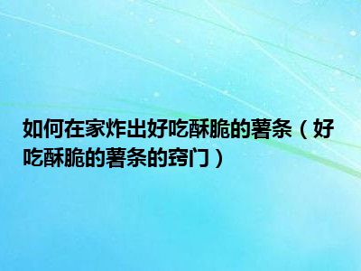 如何在家炸出好吃酥脆的薯条(好吃酥脆的薯条的窍门)