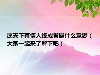 愿天下有情人终成眷属什么意思(大家一起来了解下吧)