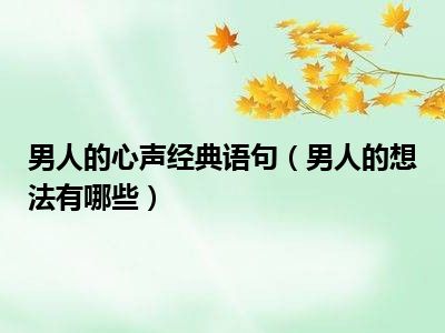 欢迎观看本篇文章,小升来为大家解答以上问题。男人的心声经典语句,男人的想法有哪些很多人还不知道,现在让我们一起来看看吧!