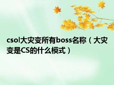 欢迎观看本篇文章,小升来为大家解答以上问题。csol大灾变所有boss名称,大灾变是CS的什么模式很多人还不知道,现在让我们一起来看看吧!