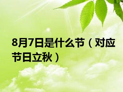 欢迎观看本篇文章,小升来为大家解答以上问题。8月7日是什么节,对应节日立秋很多人还不知道,现在让我们一起来看看吧!