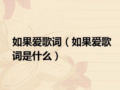 欢迎观看本篇文章,小升来为大家解答以上问题。如果爱歌词,如果爱歌词是什么很多人还不知道,现在让我们一起来看看吧!