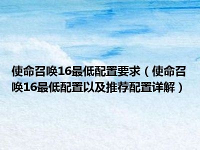 使命召唤16最低配置要求(使命召唤16最低配置以及推荐配置详解)