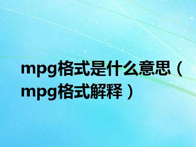 欢迎观看本篇文章,小升来为大家解答以上问题。mpg格式是什么意思,mpg格式解释很多人还不知道,现在让我们一起来看看吧!