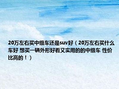 20万左右买中级车还是suv好(20万左右买什么车好 想买一辆外形好看又实用的的中级车 性价比高的!)