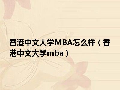 大家好,小豆豆来为大家解答以上的问题。香港中文大学MBA怎么样,香港中文大学mba这个很多人还不知道,现在让我们一起来看看吧!