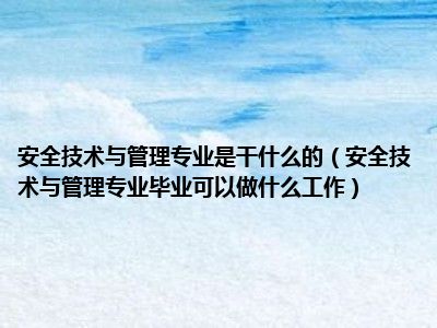 安全技术与管理专业是干什么的(安全技术与管理专业毕业可以做什么工作)