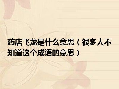 欢迎观看本篇文章,小升来为大家解答以上问题。药店飞龙是什么意思,很多人不知道这个成语的意思很多人还不知道,现在让我们一起来看看吧!