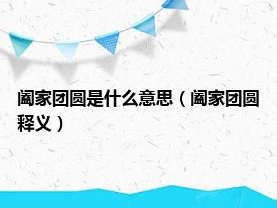 欢迎观看本篇文章,小升来为大家解答以上问题。阖家团圆是什么意思,阖家团圆释义很多人还不知道,现在让我们一起来看看吧!
