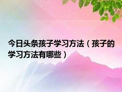 今日头条孩子学习方法(孩子的学习方法有哪些)