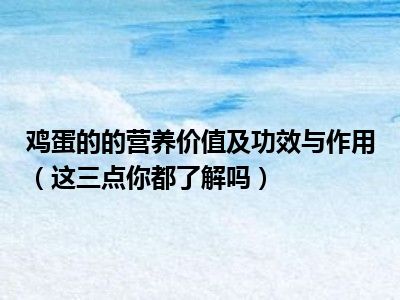 鸡蛋的的营养价值及功效与作用(这三点你都了解吗)