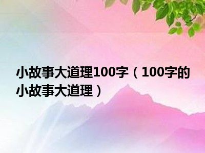 欢迎观看本篇文章,小升来为大家解答以上问题。小故事大道理100字,100字的小故事大道理很多人还不知道,现在让我们一起来看看吧!
