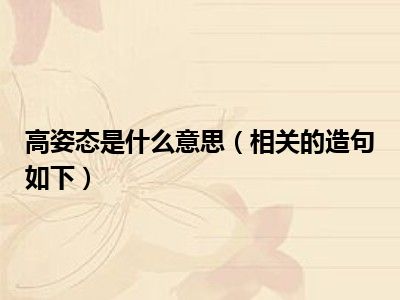 欢迎观看本篇文章,小升来为大家解答以上问题。高姿态是什么意思,相关的造句如下很多人还不知道,现在让我们一起来看看吧!