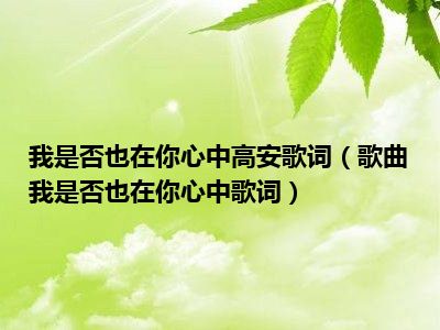 我是否也在你心中高安歌词(歌曲我是否也在你心中歌词)