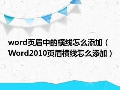 word页眉中的横线怎么添加(Word2010页眉横线怎么添加)