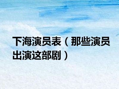 欢迎观看本篇文章,小升来为大家解答以上问题。下海演员表,那些演员出演这部剧很多人还不知道,现在让我们一起来看看吧!