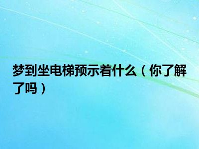欢迎观看本篇文章,小升来为大家解答以上问题。梦到坐电梯预示着什么,你了解了吗很多人还不知道,现在让我们一起来看看吧!