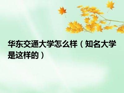 欢迎观看本篇文章,小升来为大家解答以上问题。华东交通大学怎么样,知名大学是这样的很多人还不知道,现在让我们一起来看看吧!
