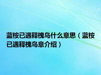 蓝桉已遇释槐鸟什么意思(蓝桉已遇释槐鸟意介绍)