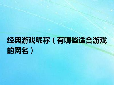 欢迎观看本篇文章,小升来为大家解答以上问题。经典游戏昵称,有哪些适合游戏的网名很多人还不知道,现在让我们一起来看看吧!