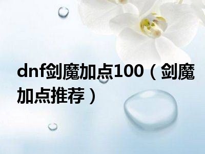 dnf剑魔加点100(剑魔加点推荐)