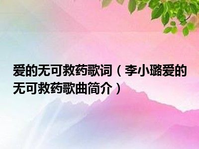 爱的无可救药歌词(李小璐爱的无可救药歌曲简介)