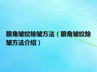 眼角皱纹除皱方法(眼角皱纹除皱方法介绍)