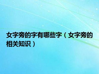 欢迎观看本篇文章,小升来为大家解答以上问题。女字旁的字有哪些字,女字旁的相关知识很多人还不知道,现在让我们一起来看看吧!