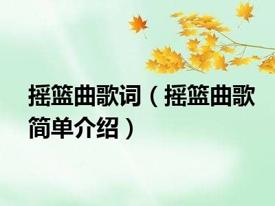摇篮曲歌词(摇篮曲歌简单介绍)