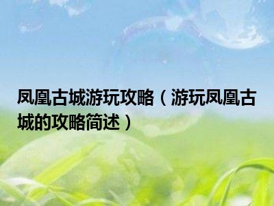 凤凰古城游玩攻略(游玩凤凰古城的攻略简述)