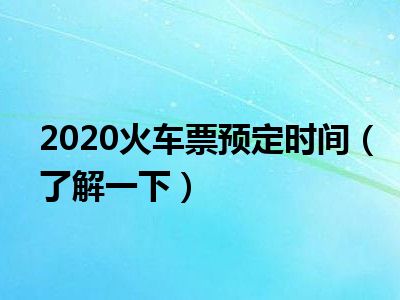 欢迎观看本篇文章,小升来为大家解答以上问题。2020火车票预定时间,了解一下很多人还不知道,现在让我们一起来看看吧!