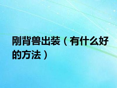 刚背兽出装(有什么好的方法)