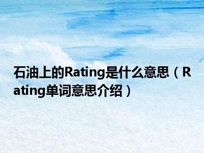 欢迎观看本篇文章,小升来为大家解答以上问题。石油上的Rating是什么意思,Rating单词意思介绍很多人还不知道,现在让我们一起来看看吧!