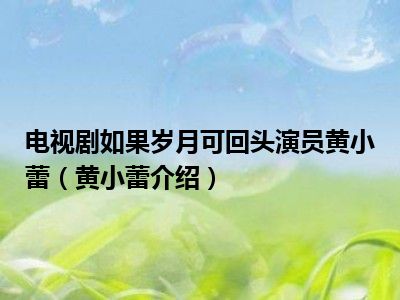电视剧如果岁月可回头演员黄小蕾(黄小蕾介绍)