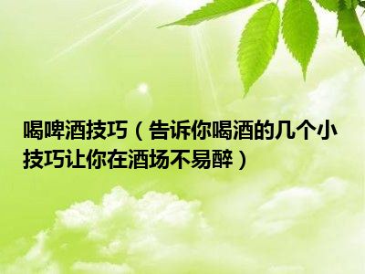 欢迎观看本篇文章,小升来为大家解答以上问题。喝啤酒技巧,告诉你喝酒的几个小技巧,让你在酒场不易醉很多人还不知道,现在让我们一起来看看吧!