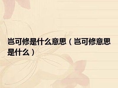 欢迎观看本篇文章,小升来为大家解答以上问题。岂可修是什么意思,岂可修意思是什么很多人还不知道,现在让我们一起来看看吧!