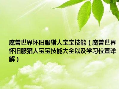 欢迎观看本篇文章,小升来为大家解答以上问题。魔兽世界怀旧服猎人宝宝技能,魔兽世界怀旧服猎人宝宝技能大全以及学习位置详解很多人还不知道,现在让我们一起来看看吧!