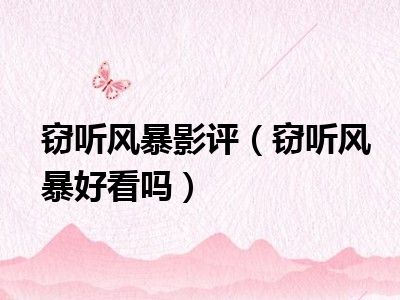 欢迎观看本篇文章,小升来为大家解答以上问题。窃听风暴影评,窃听风暴好看吗很多人还不知道,现在让我们一起来看看吧!