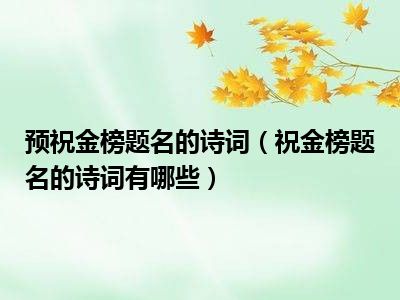 预祝金榜题名的诗词(祝金榜题名的诗词有哪些)