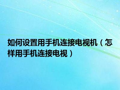 如何设置用手机连接电视机(怎样用手机连接电视)