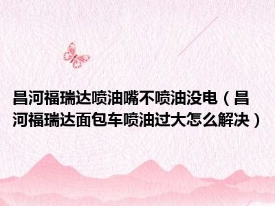 昌河福瑞达喷油嘴不喷油没电(昌河福瑞达面包车喷油过大怎么解决)