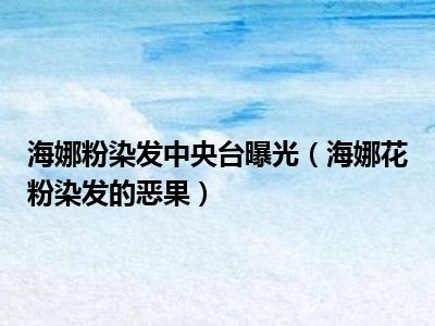 大家好,我是小前,我来为大家解答以上问题。海娜粉染发中央台曝光,海娜花粉染发的恶果很多人还不知道,现在让我们一起来看看吧!