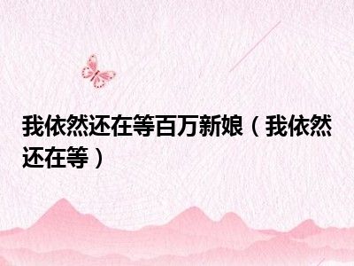 大家好,我是小前,我来为大家解答以上问题。我依然还在等百万新娘,我依然还在等很多人还不知道,现在让我们一起来看看吧!