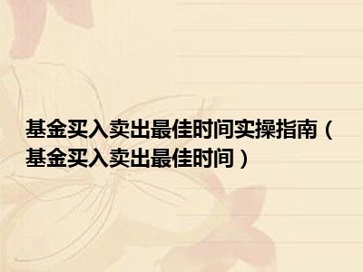 基金买入卖出最佳时间实操指南(基金买入卖出最佳时间)
