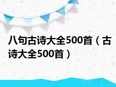大家好,我是小前,我来为大家解答以上问题。八句古诗大全500首,古诗大全500首很多人还不知道,现在让我们一起来看看吧!